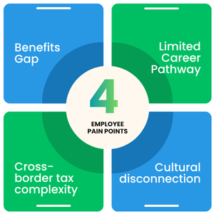Benefits gaps: EOR employees frequently receive fewer or inconsistent benefits such as limited health coverage, no retirement contributions, or excluded stock options. This perceived inequity is driving attrition and weakening the employer brand